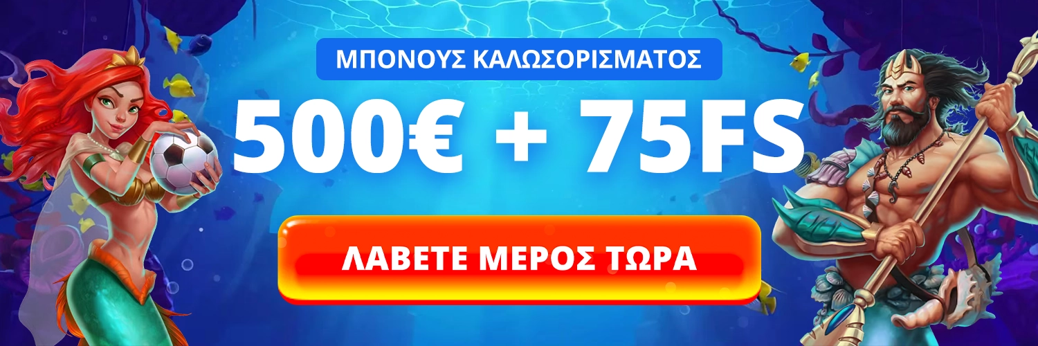 | Μπόνους καλωσορίσματος | Όπως αναφέραμε και στον παραπάνω πίνακα, το μπόνους εγγραφής προσφέρει συνολικά 100% έως 500€ + 200FS αλλά και ένα μπόνους Crab. Καταθέστε τα πρώτα σας 20€, και έπειτα ενεργοποιήστε το μπόνους σας. Μόλις λάβετε τα προνόμια μπορείτε να ξεκινήσετε το παιχνίδι. |